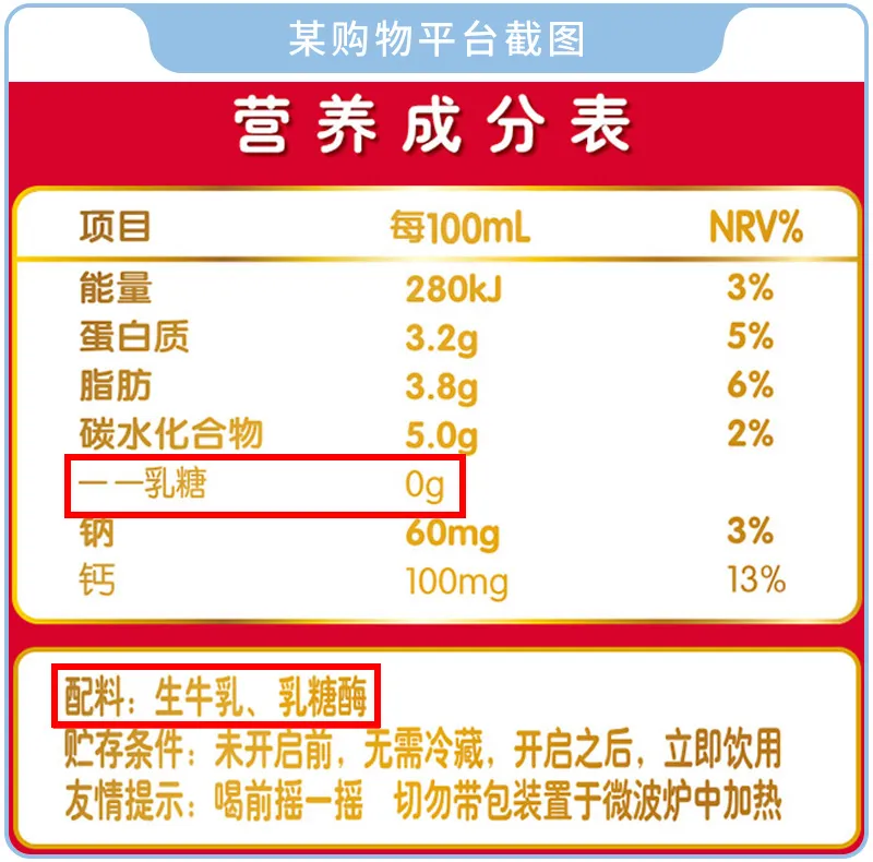 市面上无乳糖的牛奶也是五花八门,建议大家看两个指标:1、乳糖含量为零;2、配料只有生牛乳和乳糖酶。